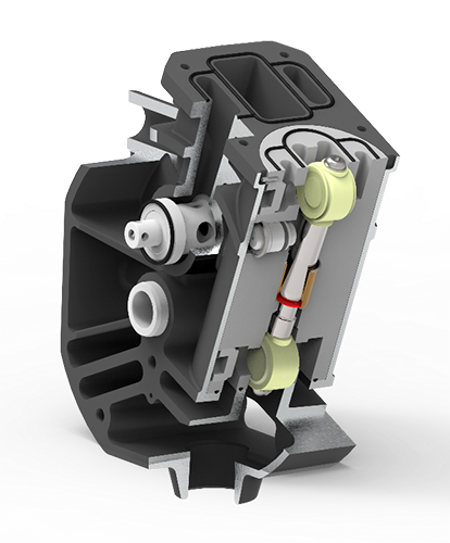 SAMOA Industrial's PIVOT series pumps feature a patented air distribution technology based on a frictionless swing valve. The unique feature of this solution is that only a single moving part is used – a swinging rod with sealing pads at each end.
