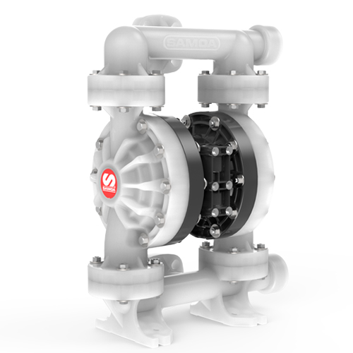 SAMOA membranpump - tryckluftsdriven för stationär eller portabel användning. Kan köras torr utan skador och kräver ingen elanslutning. Hanterar beroende på materialval både rena, smutsiga, frätande och abrasiva vätskor. Universella installationsmått för enkelt byte mot de flesta konkurrentmodeller.